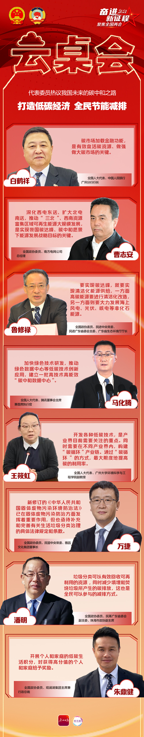 在力争2030年前实现碳达峰、2060年前实现碳中和的目标背景下,碳达峰、碳中和成为今年两会“热词”。未来中国该如何加快调整优化产业结构、能源结构,推动煤炭消费尽早达峰?又如何发动全民参与减排,达成绿色生活方式?本期云桌会邀请代表委员一起探讨我国未来的碳中和之路。