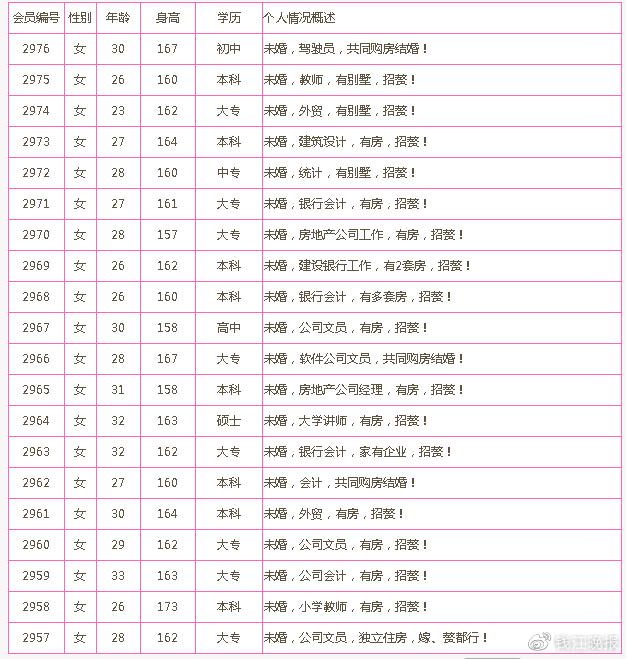 “几天前,一个做快递员的23岁小伙子联系我,想报名做上门女婿。他这么年轻,中专毕业,又没有专长,想做赘婿,很难成功。我没有接收,我告诉他先去学门技术,才有希望。”