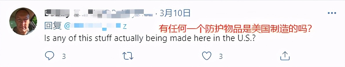 还有网友质疑,美国“有任何一个防护物品是美国制造吗?”