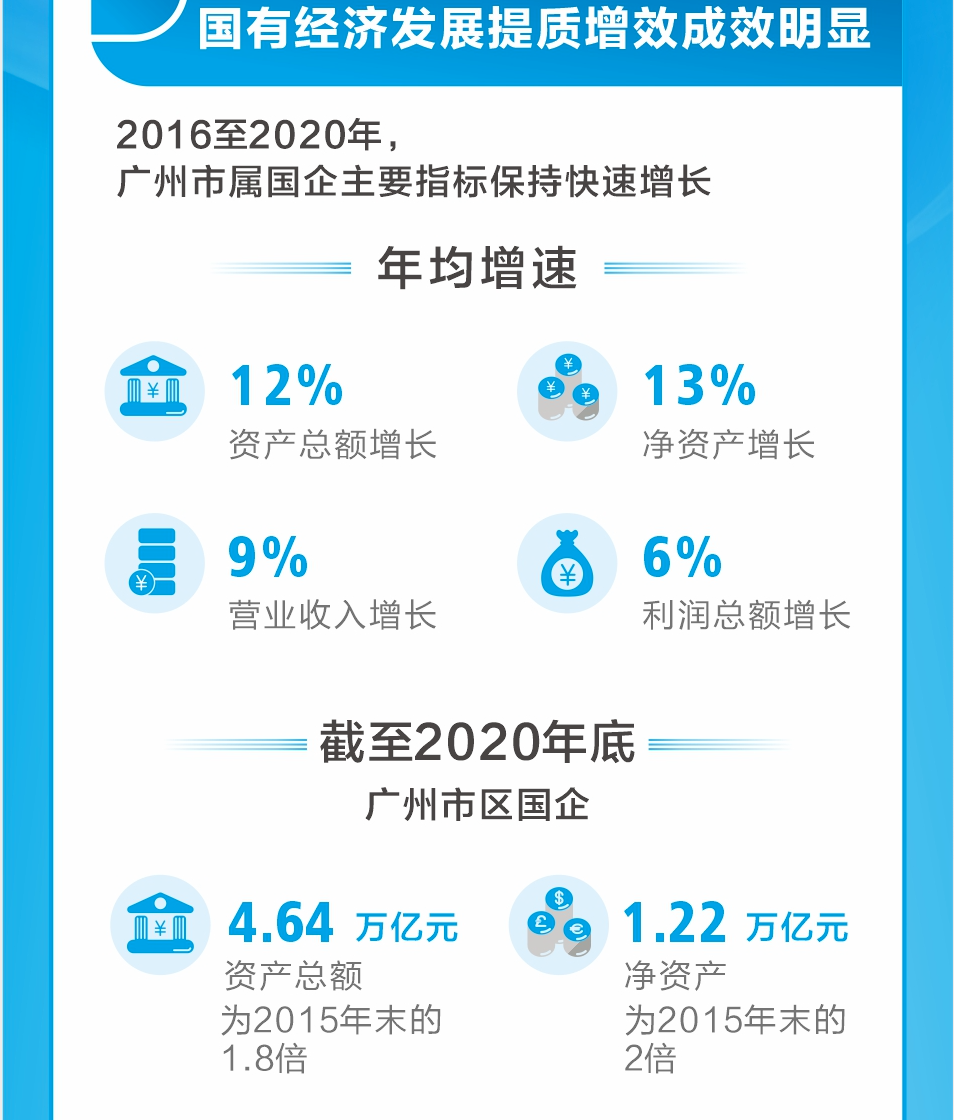 蹄疾步稳,广州国有经济持续保持稳中向好态势,在极不平凡的2020年交出了一份“含金量”十足的成绩单,全市国资国企实现营收9490.9亿元,同比增长13%,利润总额达722.6亿元,增速基本持平,其中市属国企实现营收9116.8亿元,利润总额699.9亿元。