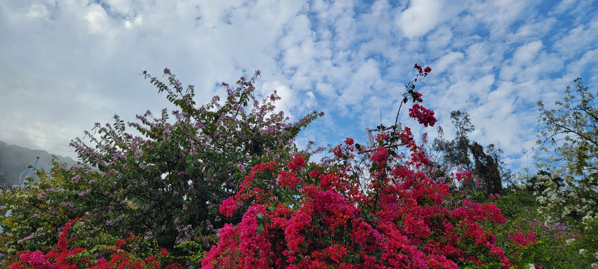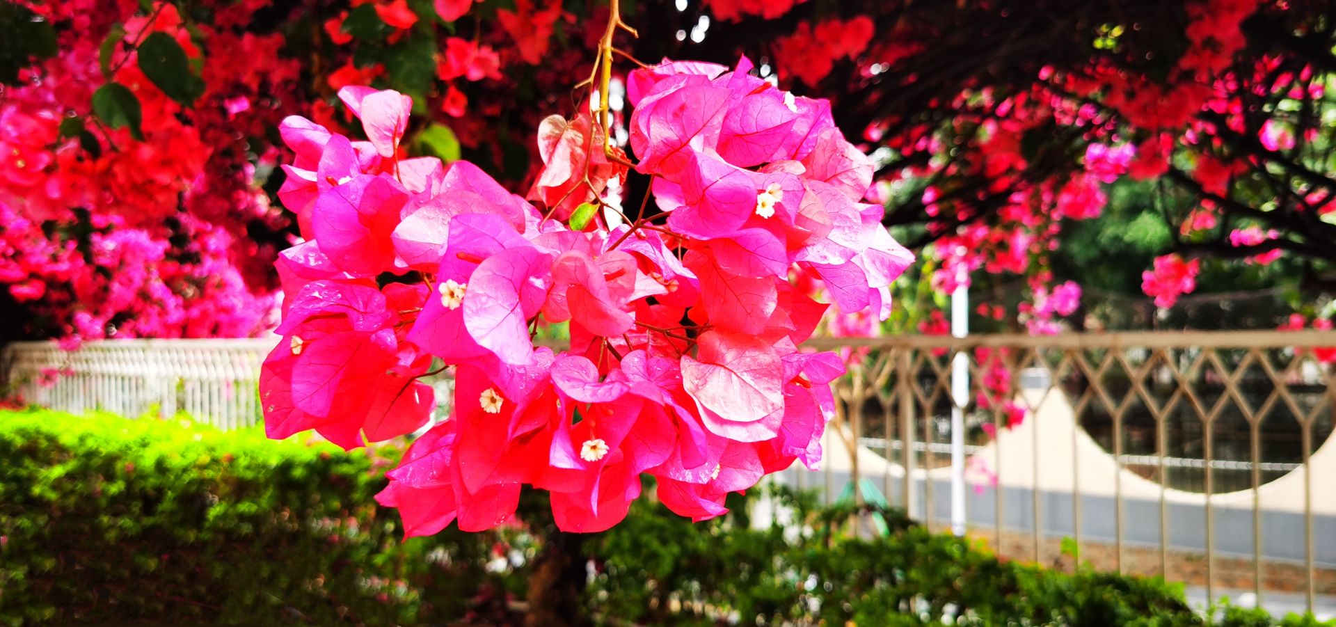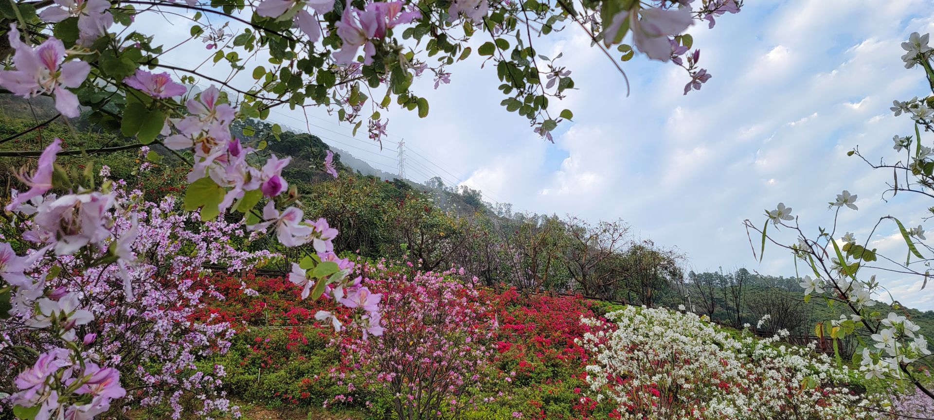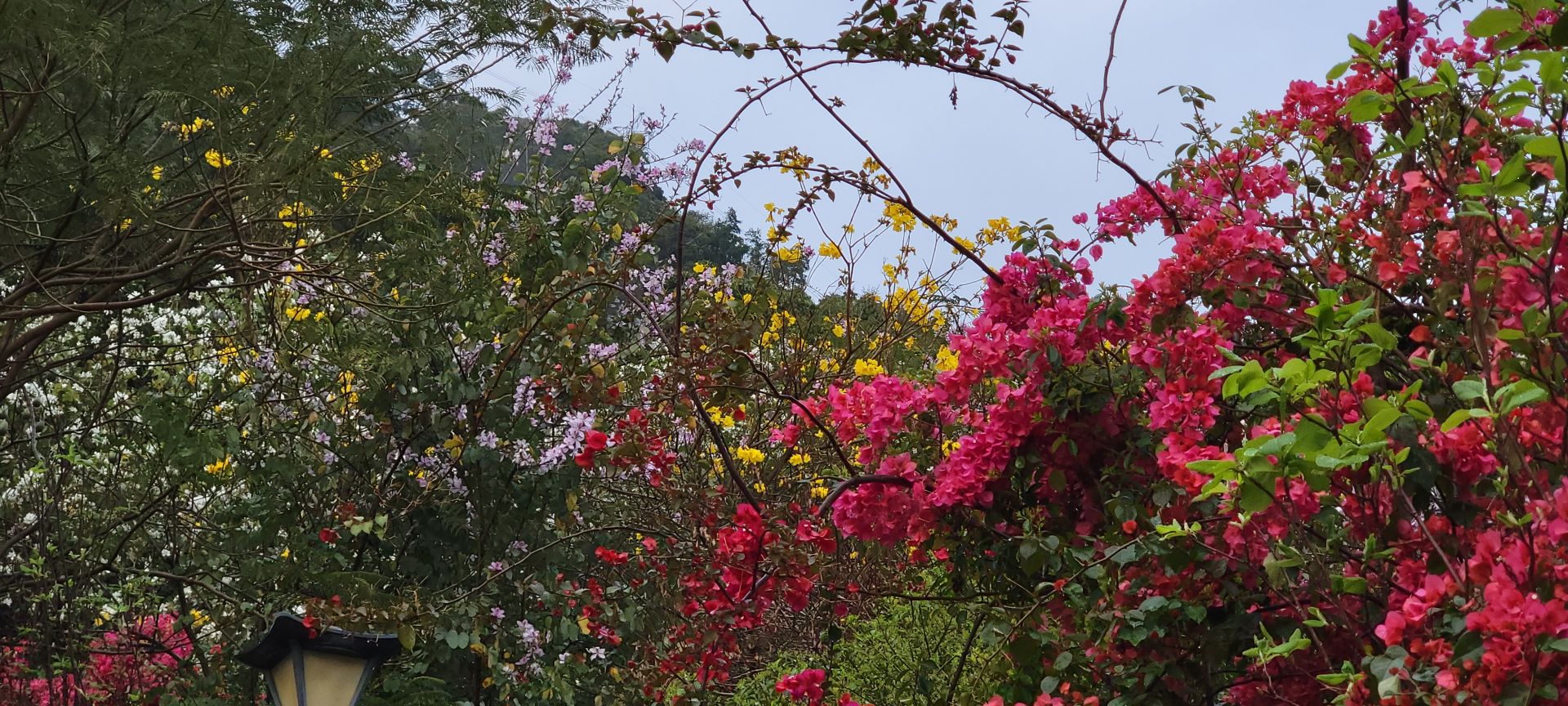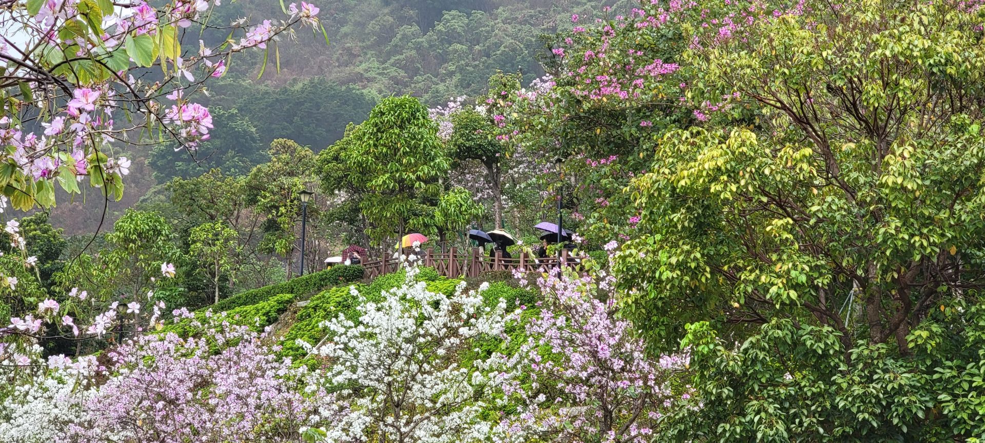 在南山区蛇口赤湾,有这样一所繁花绽放的公园,将春天藏在了港湾生活小区的人间烟火中。来到龙英路景观公园,抬头看眼前的天空,如儿时动漫中的笔触所绘就,道路两旁的繁花千树,正千朵万朵压枝低。游人的心情在春天里,随花朵一同盛开。