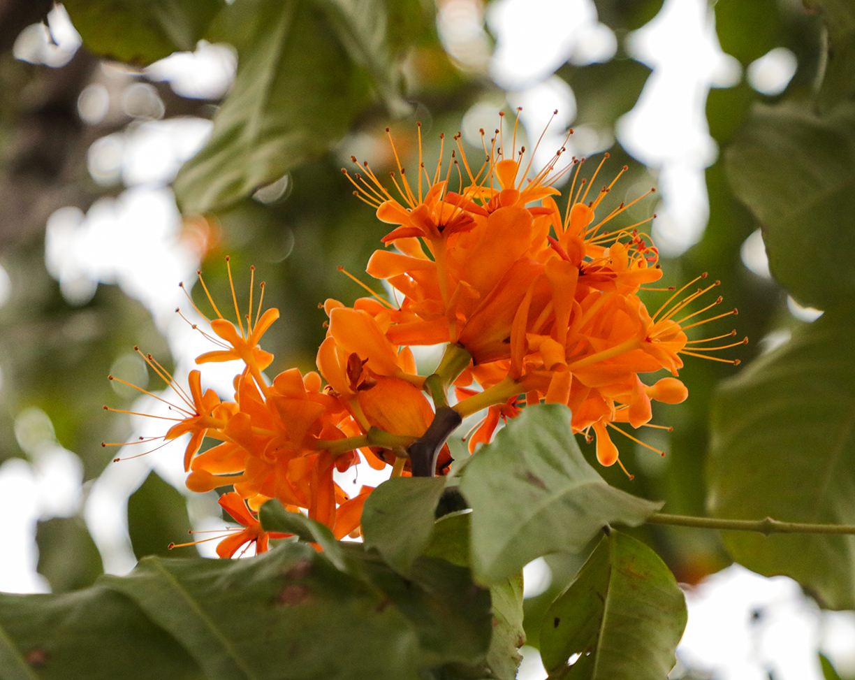 广州地区的无忧树,在常年,通常是2月下旬进入始花期,3月下旬前后进入盛花期,4月下旬转入末花期。今年春季,广州天气偏暖,不少花卉提早吐艳,无忧树也不例外。个别无忧树,去年寒冬腊月已怒放繁花。