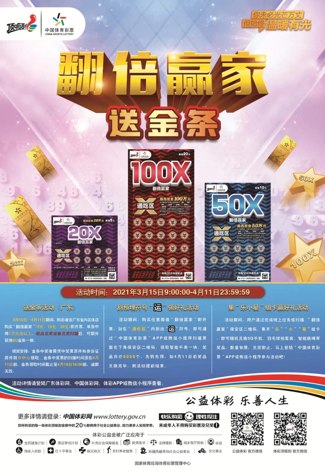 为回馈广大消费者长期的支持与厚爱,倡导即开票“随手公益”理念,体育彩票中心将于近日上市好玩有趣的“翻倍赢家”即开票,并于3月15日(下周一)起开展“翻倍赢家送金条”等三重好礼促销活动,将送出8克金条、智能手表、5g智能手机、羽毛球拍套装、定制智能跳绳等缤纷好礼,欢迎各位积极参与。