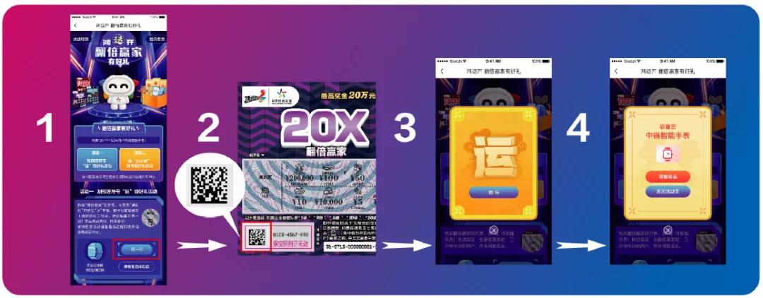 好礼二:在活动期间内,购买“翻倍赢家”刮出“运”字符号,可通过“中国体育彩票”APP或微信小程序扫描票面左下角保安区二维码,领智能手表一块,数量有限,兑完即止。