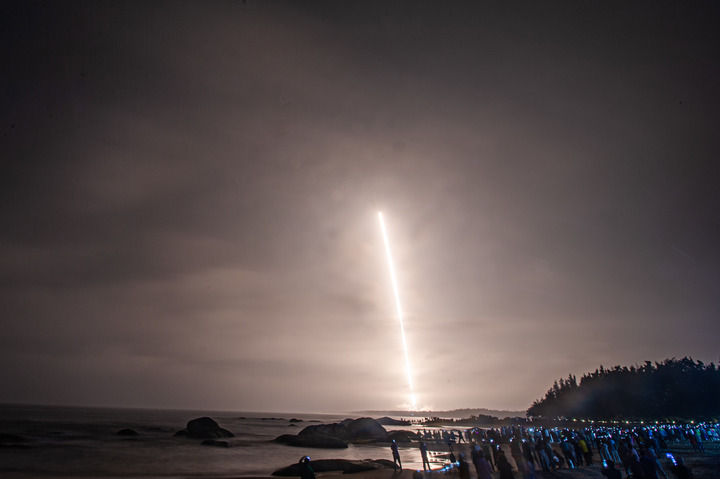 ↑3月12日1时51分,我国在文昌航天发射场成功完成长征七号改遥二运载火箭发射。本次发射的试验九号卫星主要用于空间环境监测等新技术在轨验证试验。 新华社记者 郭程 摄