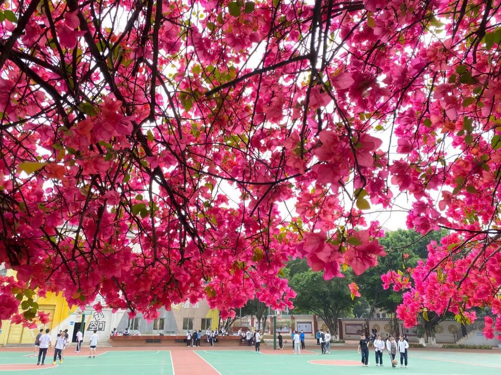 最新绽放的是遍布广州大街小巷的勒杜鹃。