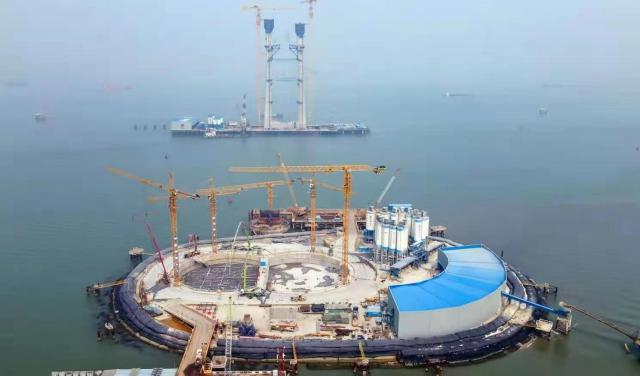 西锚碇填芯施工共分为 12 次浇筑完成,填芯钢筋总用量达到 300 吨,共计浇筑混凝土约 13 万立方米。"在施工过程中,建设者克服了夜间施工、连续施工等困难,创造了 15 天完成 4.5 万立方米混凝土浇筑速度,打破了之前保利长大在南沙大桥项目连续浇筑的纪录。"深中通道项目有关负责人表示。
