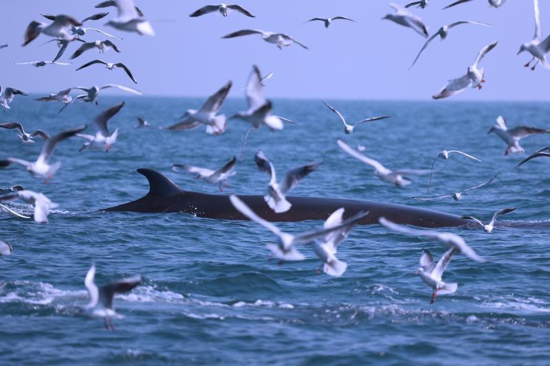 布氏鲸与海鸥共同进食。吴采雯摄