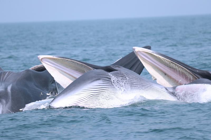 四头布氏鲸同时开口捕食。陈炳耀摄