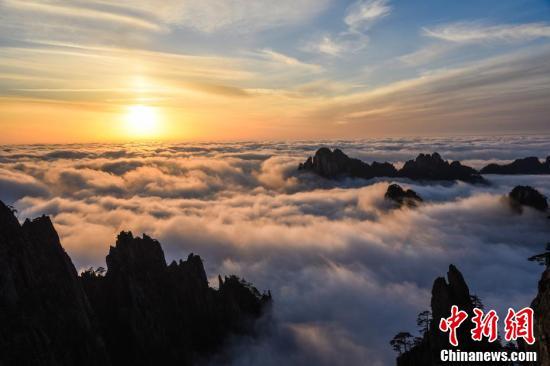 安徽黄山之巅上演云海风光大片。 李金刚 摄