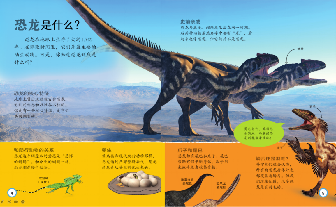 4册新书用贴近儿童心理的方式,像剥洋葱一样层层揭开神奇万物,并采用小朋友熟悉的事物来类比,更简单易懂。书中穿插的智慧小游戏,如食物链、装饰恐龙蛋、热带雨林涂色等,则让小朋友当场学以致用。这套书形式也非常精美有趣,用插画搭配实拍照,创造出了幽默的效果,阅读起来十分轻松愉快,是非常适合给儿童做博物学启蒙的书籍。