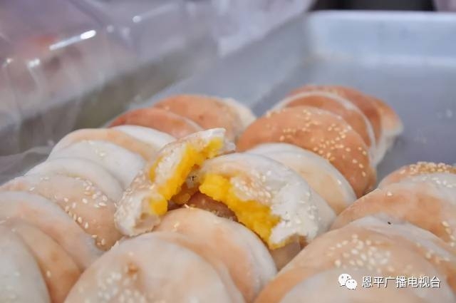 鸡央烧饼也是恩平烧饼的中坚力量,销量排名前茅!鸡央烧饼的馅料是用鸡蛋、糖等制作而成的,属于甜烧饼类,吃起来,烧饼皮相对较硬,而馅料十分柔软,软硬结合,让人越嚼越有劲,给人以芳香软糯的感觉。