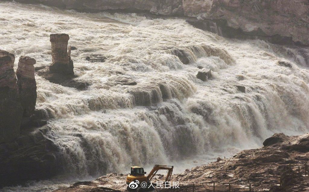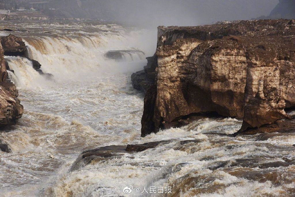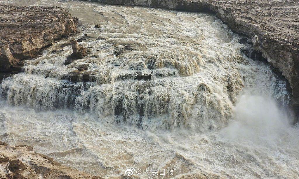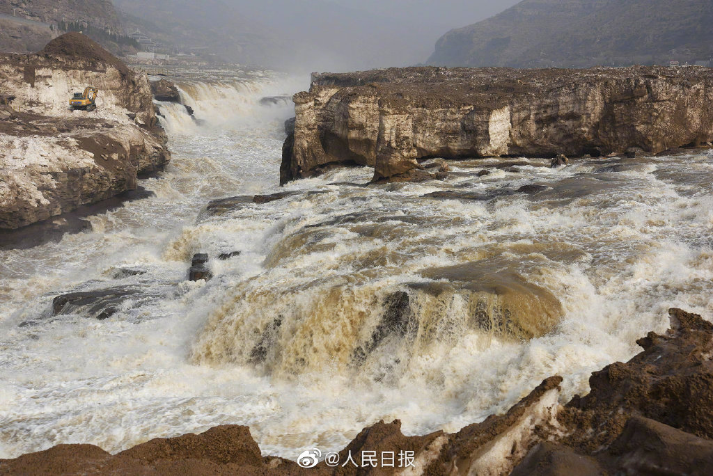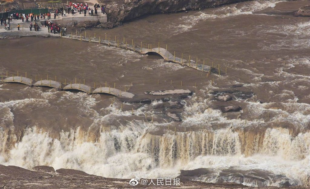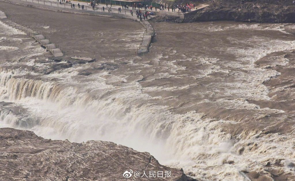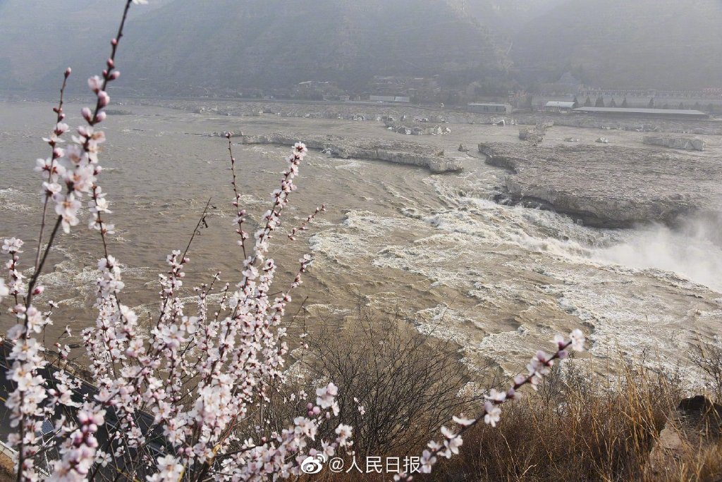 近日,位于山西吉县和陕西宜川县交界的黄河壶口瀑布迎来二十年来最早“桃花汛”。壶口瀑布水量增大,形成壮美瀑布群景观。每年三到四月,黄河内蒙古段冰凌消融形成春汛。由于恰逢黄河沿岸山桃花盛开,故被称为“桃花汛”。 (来源:人民日报微博)