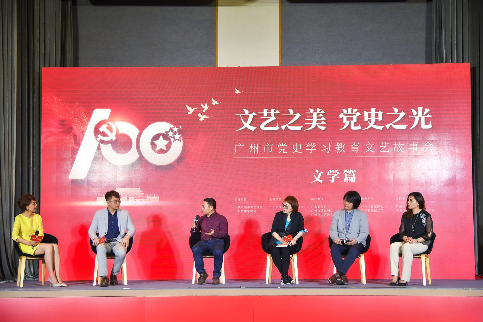 主题沙龙环节,广州市作协主席张欣,华南农业大学中文系主任、教授傅修海,广东省网络作家协会副主席阿菩,青年作家蒲荔子等嘉宾围绕“建党百年广州红色文学”,和观众分享了经典红色文学对自身创作的影响,以及在新时代将如何描绘广州、书写时代精神。