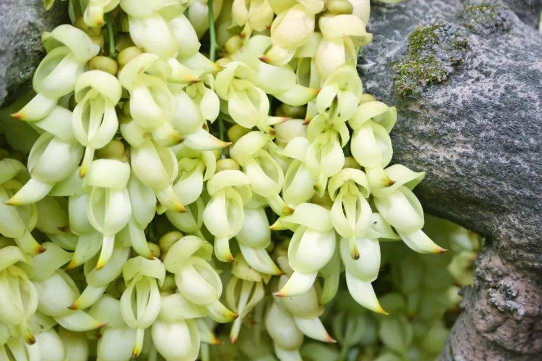 禾雀花,国家二级保护植物,豆科油麻藤属(又名黧豆属),是几种花型似雀鸟的植物的统称,又称为雀儿花。花型奇特,下垂花序上的花朵,盛开时形如成串的小雀,因外形极像禾雀而得名。