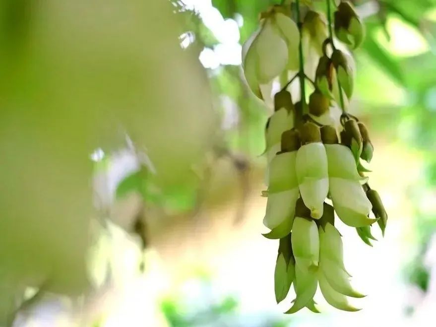 禾雀花万种风情,高雅无比,吸引了众多游客前来观赏。走入其间,仿佛听见了啾啾的鸟鸣。