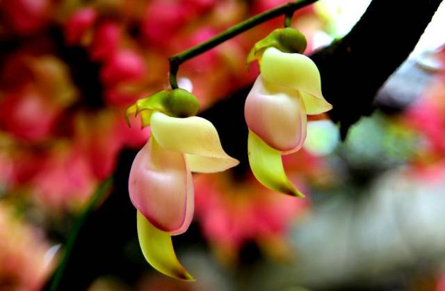 花形酷似雀鸟,头、嘴、翼、尾“四脏”俱全,花萼上的棕色绒毛就像麻雀的两只小眼睛。