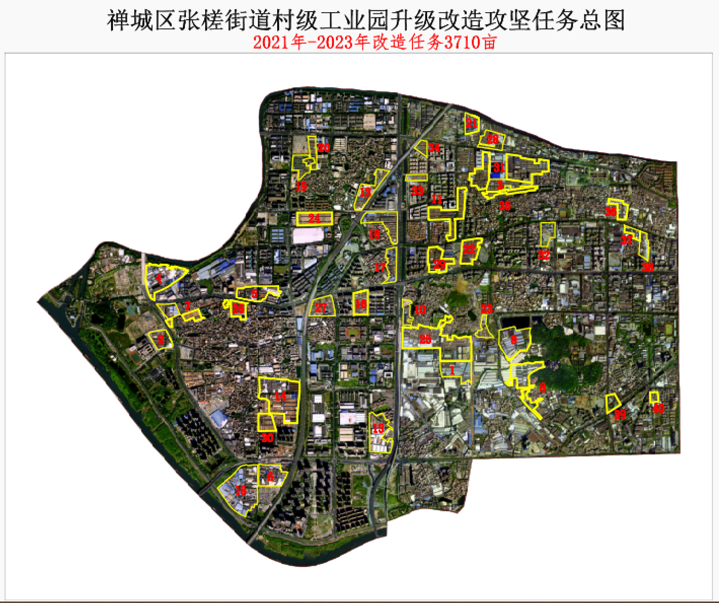 为贯彻落实市委市政府、区委区政府全面发起“村改总攻坚”的工作部署,结合市、区制订的三年行动计划要求,结合张槎街道实际,张槎街道制定了街道村级工业园及旧村改造三年行动计划(2021-2023年),涉及15个村委会,40个项目,计划拆除总面积3710亩。其中,将围绕重点轴线(季华路、佛山大道沿线)、重点区域(聚锦科创园片区)、重点门户(王借岗大桥、季华大桥、高速公路出入口)着重展开村级工业园+旧村居连片改造。