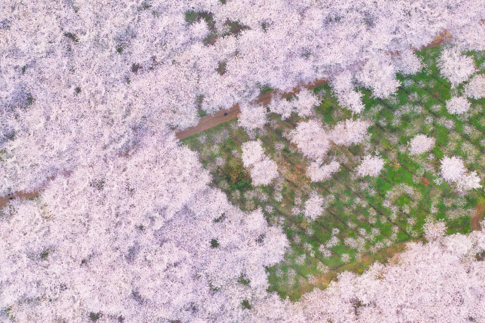 3月13日至14日,贵州省安顺市,万亩樱花齐开放形成粉色花海。(图片来源:侯颖洲/人民视觉)