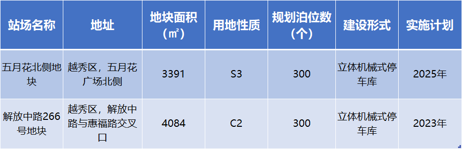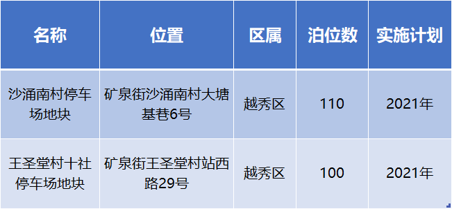 全市规划点位50个、提供停车泊位14796个,越秀区规划停车场2个,泊位600个。