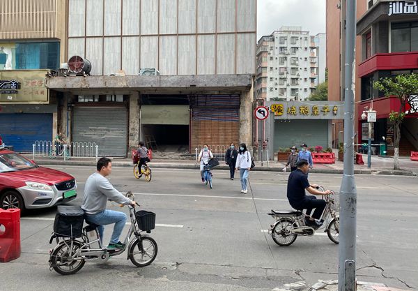 石牌东路,行人横穿马路现象频繁。石牌东路道路狭窄、车流量大。一些电动车、共享单车随意乱停车,造成非机动车车道堵塞,马路上机动车和非机动车混行十分普遍。非机动车径直行驶在马路中央,不但造成通行秩序的混乱,也存在着安全隐患。部分货车直接在狭小的道路旁卸货,道路更是被迫“瘦身”。