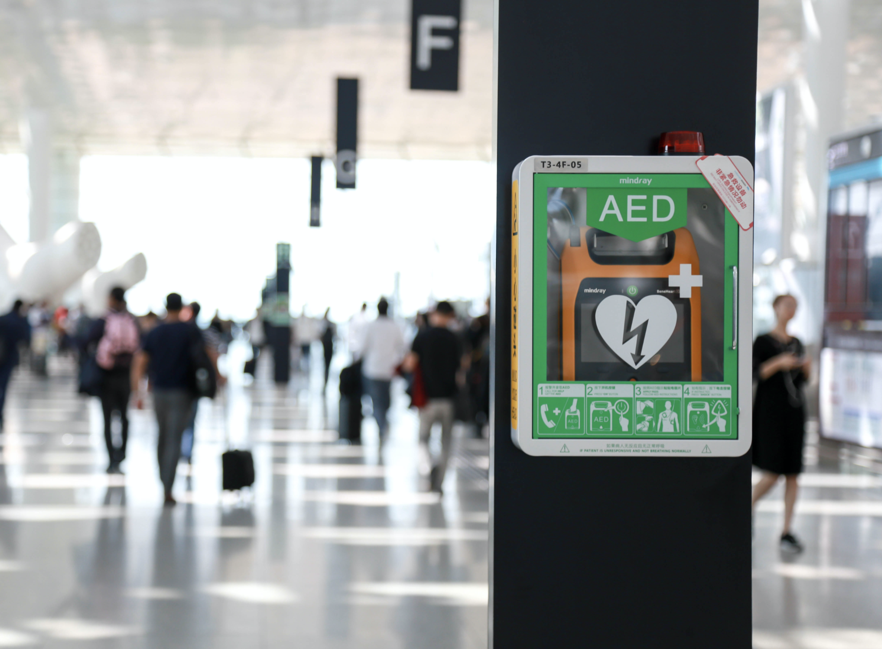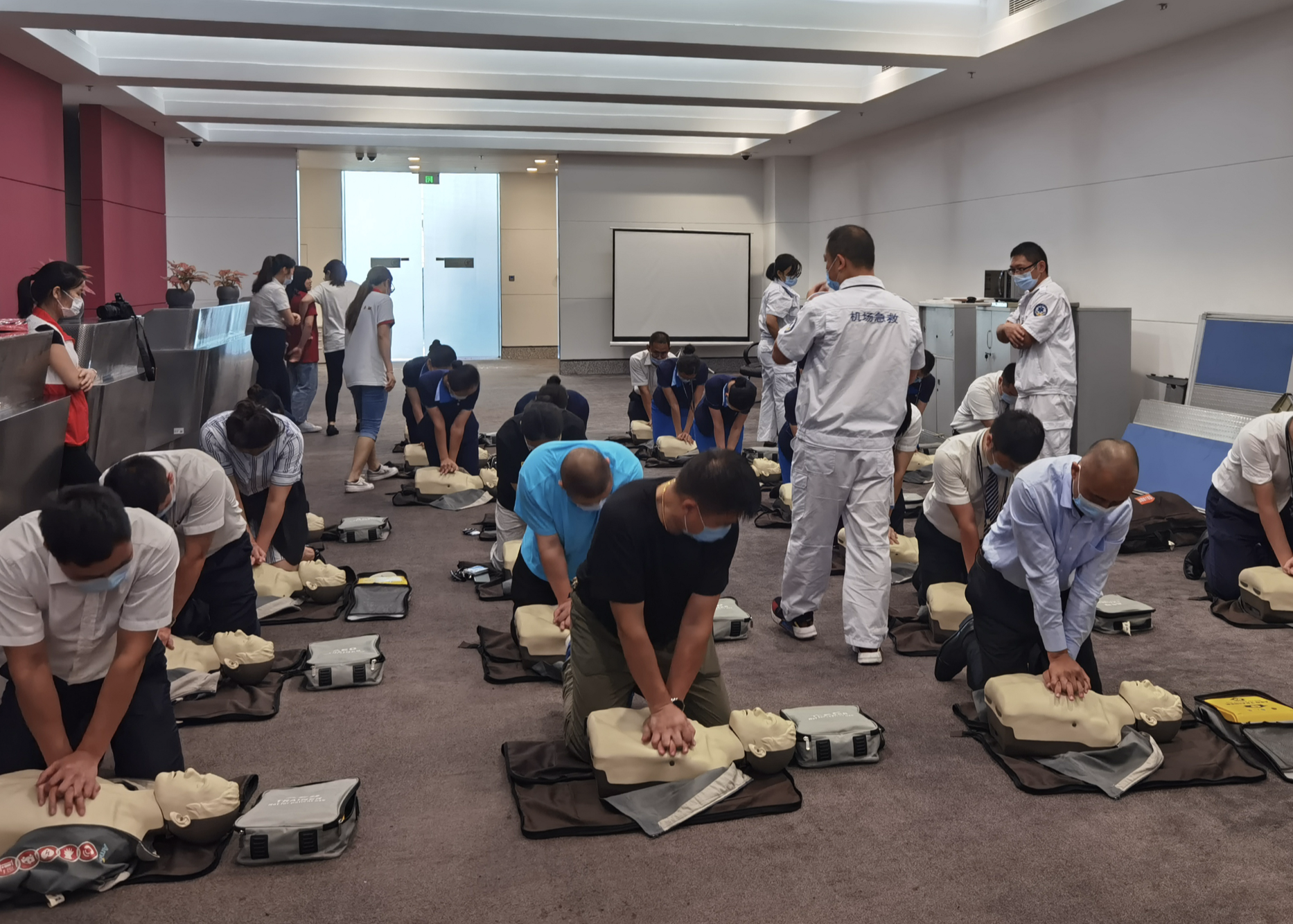 据了解,作为深圳首个配置AED设备的公共交通场所,深圳机场2016年起大规模配备AED设备,目前航站楼内外AED设备数量已超过130台,成为全国AED设备覆盖率最高的机场之一。在从硬件层面提升机场应急救护供给能力的同时,深圳机场围绕“人人都是救护员”的目标,面向机场及各驻场单位、航空公司等空港员工开展急救技能培训,目前已有超过8000名工作人员完成心肺复苏及AED规范化使用等急救技能培训与考核,成为空港“义务急救员”,基本实现了窗口岗位急救培训全员覆盖。