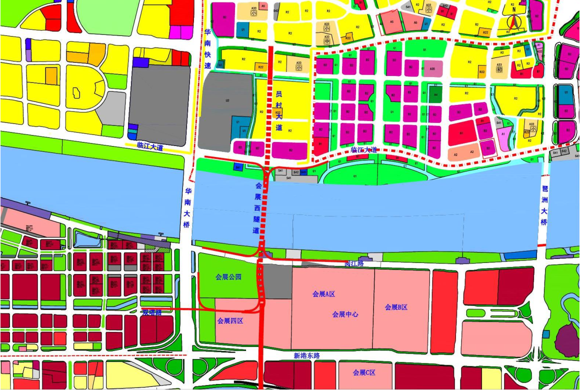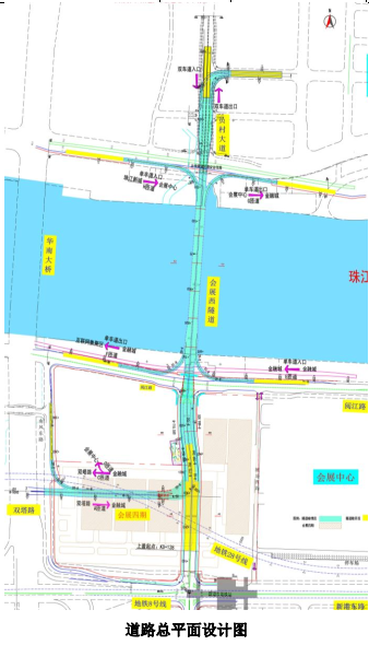 设计图显示,会展西路过江隧道计划采用隧道形式下穿拟建会展四期、阅江路、珠江前航道、临江大道等重要等重要交通通道。