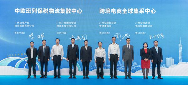 信息时报讯 (记者 成小珍 欧嘉福 通讯员 穗空港宣 关悦)广州空港建设发展“提档加速”再迎新突破!3月18日,广州白云机场综合保税区(南区)正式开园暨中欧班列保税物流集散中心启用活动举行,活动中,中欧班列保税物流集散中心、跨境电商全球集采中心项目正式签约。