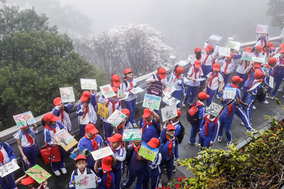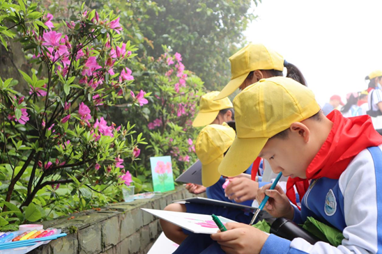 值得一提的是,在花会开幕式现场还刮起了一阵“活力风暴”,来自深圳市大望学校的150名学生拿起画板和画笔参加“百名学子画杜鹃”活动。百余名学生整齐划一的在景区内开展写生活动,用画笔描绘优美的毛棉杜鹃花,一幅幅画作与毛棉杜鹃花海交相辉映,自成一幅画卷,引得周边游人竞相拍照。