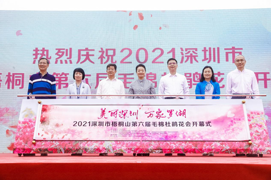 “在2021深圳市梧桐山第六届毛棉杜鹃花会上,我们紧扣‘建党一百周年’核心主题,开展红色主题花艺展,布置深圳‘最高’红色故事走廊,以深圳山林间的‘精灵’毛棉杜鹃献礼建党一百周年。”在烟云缭绕的深圳电视塔上,深圳市梧桐山风景区管理处办公室主任黄斌在“双周发布”现场介绍说。