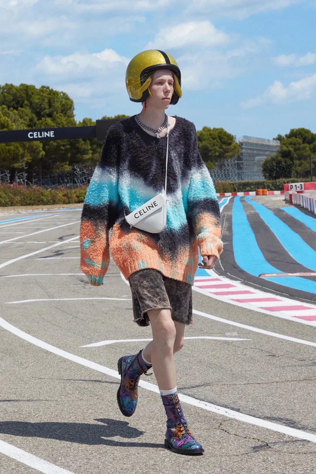 Celine的三角包,尽管是男装秀场里的新品,但外形简洁,男女都适合,符合UNISEX无性别风的潮流逻辑,超模刘雯与女星周雨彤都曾背过此款街拍。