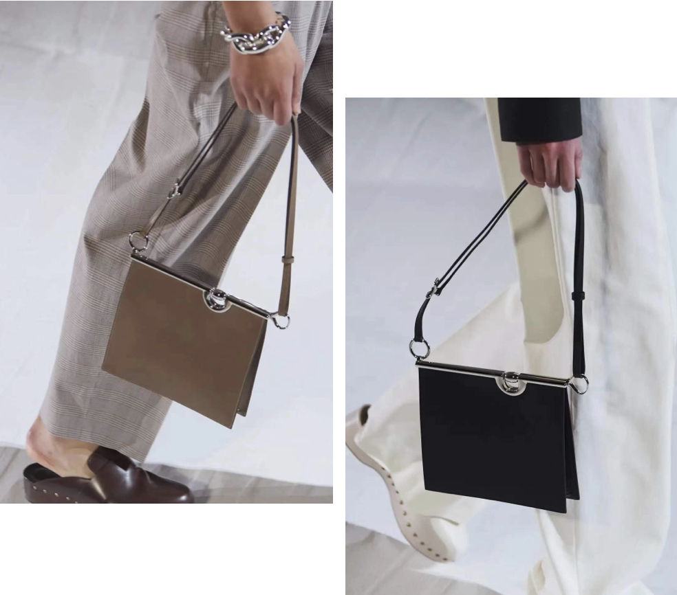 最后不能忘记的是Hermès Mors De Bride Bag,被美其名曰爱家新款包中的潜力股。灵感来源于马术中的马衔铁元素,金属铁杆和圆润的环形设计是它的一大亮点。棱角分明的轮廓也让这款包拥有无性别的气质,职场精英女性不容错过。