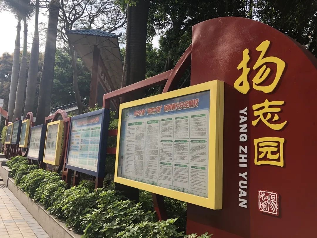 沿着有为大道走进校园深处,两旁绿树成荫,鲜花盛开。左侧是扬志园,展示了优秀的有为学子和师长风采。