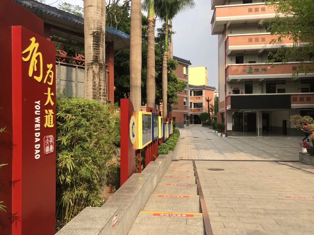 乐学园是一个古色古香的长廊,两边是别致的满洲窗,装裱着历届优秀学子的读书心得。长廊内还有书橱和长椅,让孩子们在校园内可以随处读书,好好读书,以阅读为乐,交流心得,其乐无穷。乐学园的旁边是有为苑,内由茶韵坊和康有为纪念馆组成。茶韵坊是茶韵社团研习茶艺、品味茶香之所。而康有为纪念馆除了介绍康有为先生的生平和作品集之外,还展示了师生们的书画作品。除此以外,校园内的体育设施、各种专用场室齐全,满足学生个性化学习与特长发展的需要。