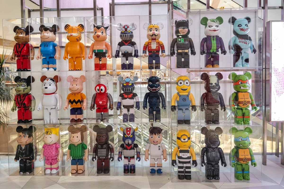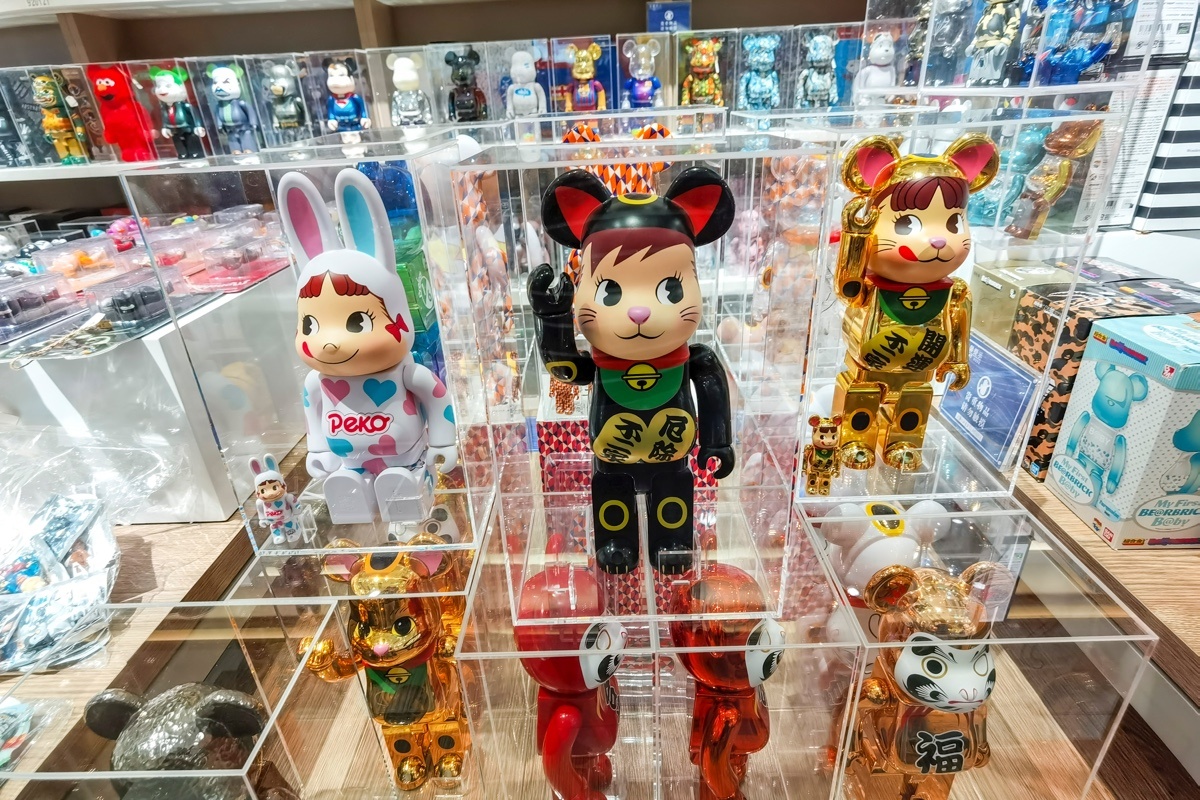 积木熊的工艺制作良好。除了常见的PVC材料外,一些特殊款式还会使用超合金、植绒等特殊材料,外加抛光、电镀等工艺运用,整体风格的呈现十分多样。