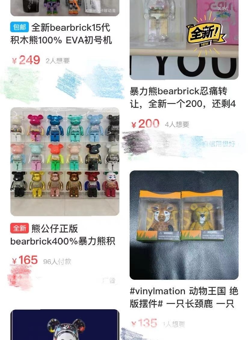 有买就有卖,有涨就有跌。某社交网络平台网友“粒粒橙”介绍到:“即使在熊圈,炒熊也不一定就赚钱的。”该网友去年花3万元购买了一只粉色限量款积木熊,到今年价格却已经跌下1.4万元。