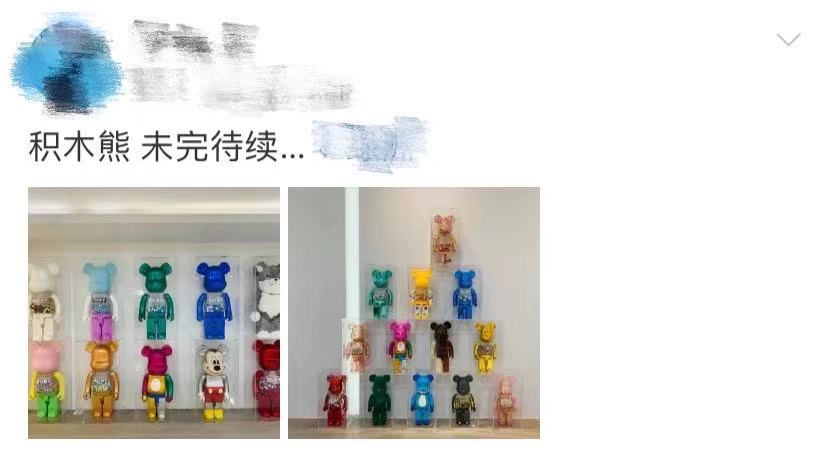 积木熊还能满足不少网友的“分享欲”。买回家的“熊”不能只是“光秃秃”地摆放在家里,“晒熊”成为不少玩家的日常。一些买家会在各种社交平台上分享自己“熊”的照片,还有一些资深买家会拍摄“开箱视频”。有的视频平台上,还有大量普及积木熊知识、展示积木熊收藏的视频。