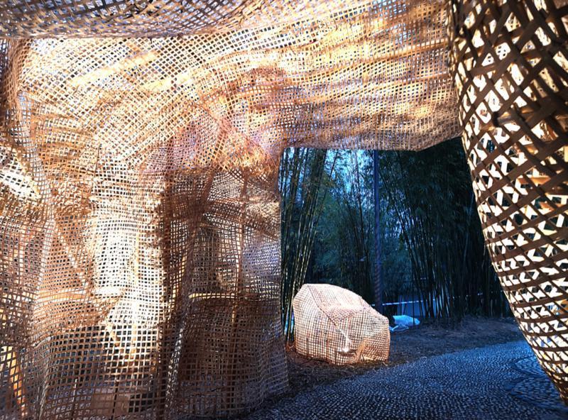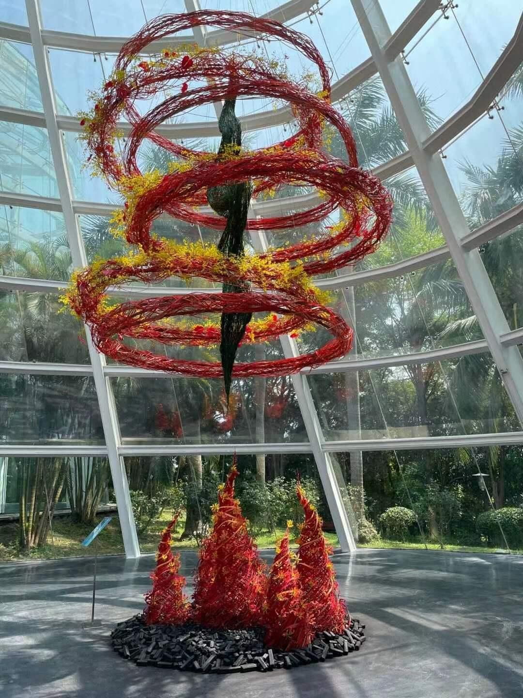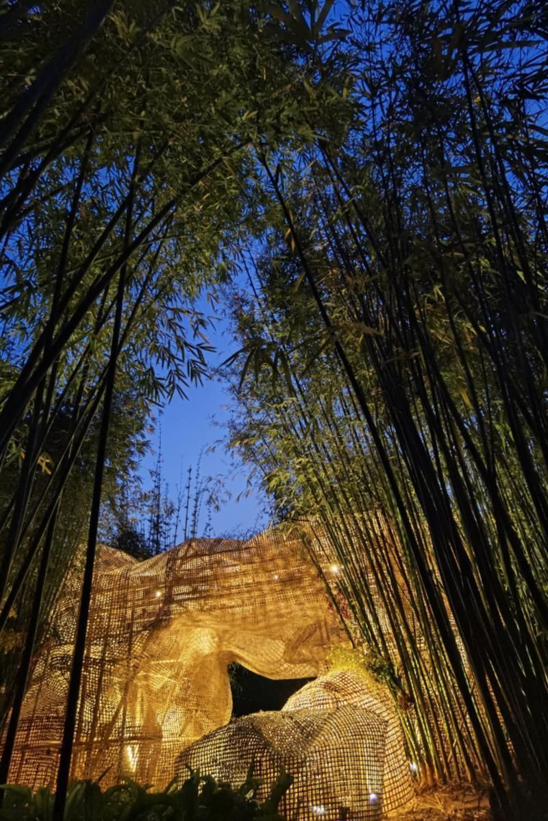 现代竹编公共艺术品便位于“创意花园”中,其设计造型引人注目。据了解,该作品是以一首唱遍大街小巷的歌曲《我和我的祖国》作为设计的主题,利用竹子特有的韧性将浪花、波涛的造型完美结合,并融合花卉组合打造成赏心悦目的一景,让传统竹制品与现代技术接轨。