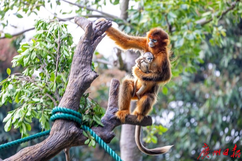 近日,广州的川金丝猴家族迎来新成员的满月,这也是该家族出生的第24只川金丝猴幼崽。记者前往金猴王国探访憨状可掬的国宝川金丝猴幼崽。
