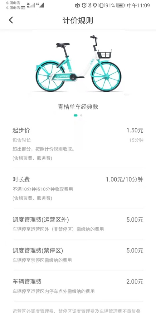 青桔单车上海计价规则。受访者供图