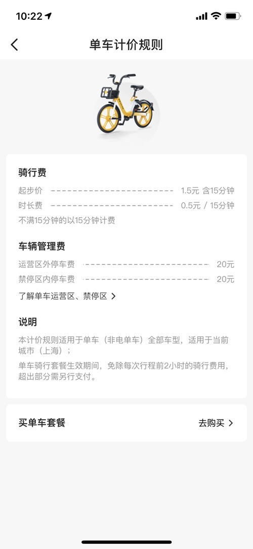 美团单车上海收费规则。受访者供图