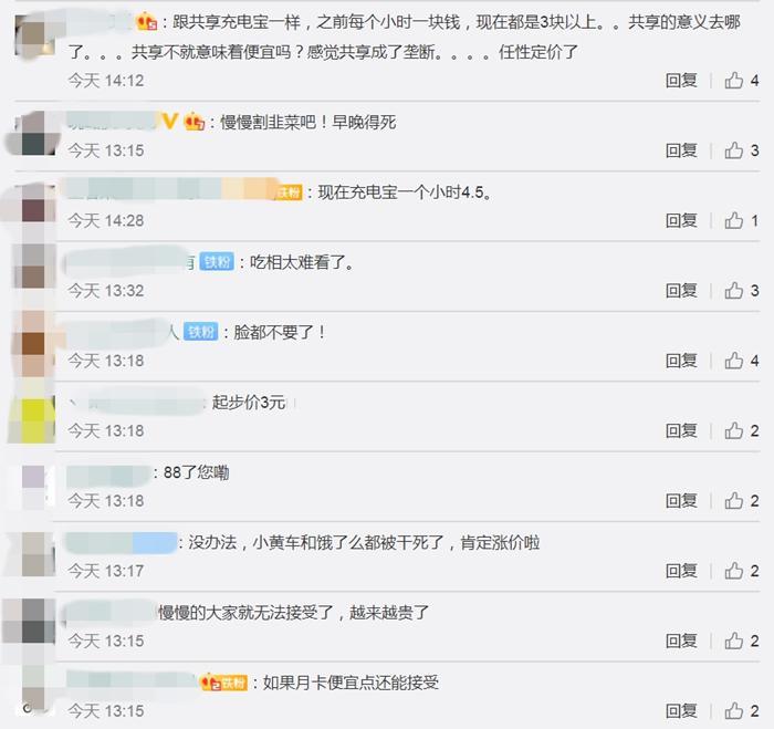 针对共享单车涨价情况,有网友吐槽:绿色出行就一定得把我们当做韭菜吗?