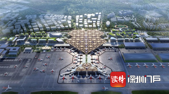 深圳机场东综合交通枢纽概念设计及主体建筑设计国际竞赛推荐方案之一(效果图)。