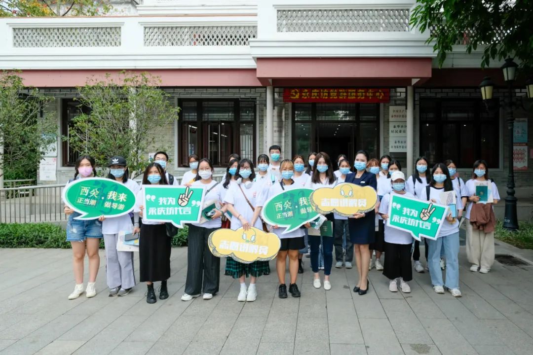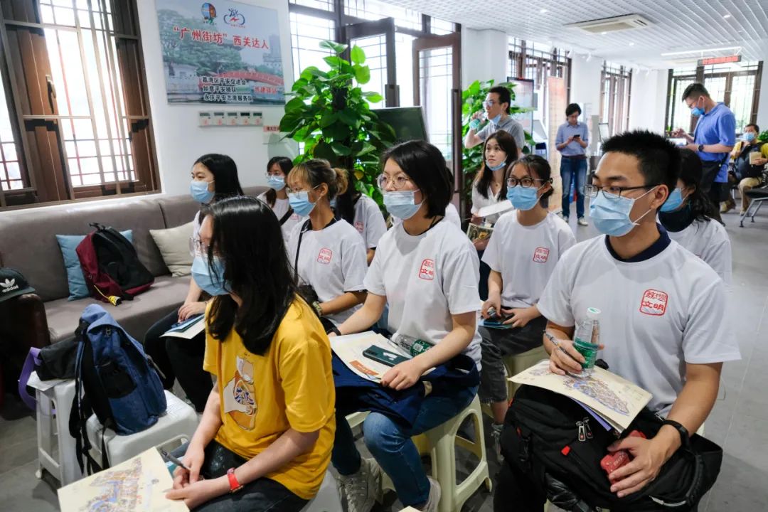 3月20日上午,“西关正当潮,我来做导游”——荔湾区2021年新时代文明实践“志愿服务”主题月活动在永庆坊新时代文明实践站正式启动。20多位来自广东外语外贸大学以及广东工业大学的青年学生在永庆坊景区专业讲解员的带领下游览永庆坊,学习相关历史知识,同时也在永庆坊党群服务中心学习志愿服务业务知识,为成为成熟的、专业的志愿讲解员做了充足准备。