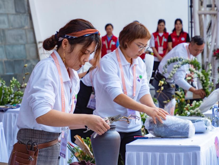 在集中展現現代花藝和中國傳統插花藝術之美的同時,園博園展場還舉辦了「花舞霓裳」花藝秀、花藝課堂、花茶會等系列花藝活動,讓花藝融入生活、美化生活。此外,在20日舉辦的花卉使者巡遊活動中,背着花簍的少年為市民遊客送上鮮花,傳遞和分享愛的喜悅。