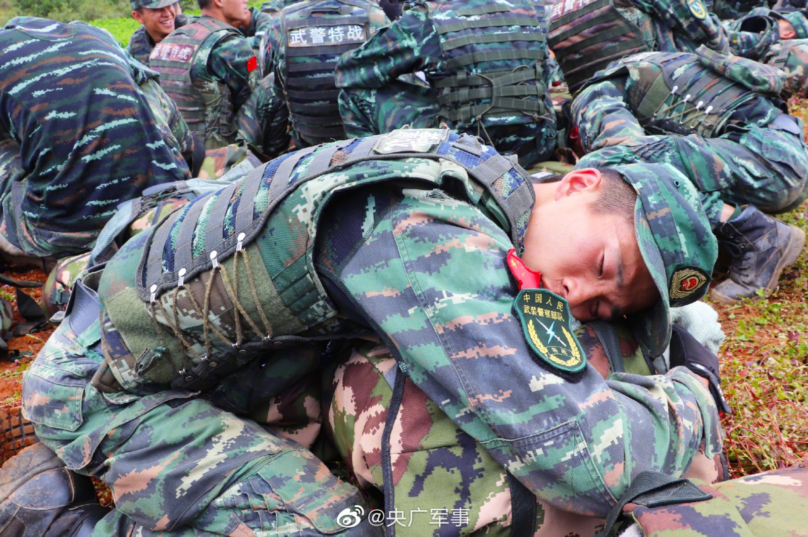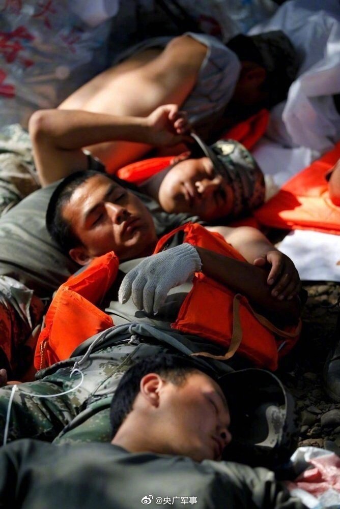 他们冲锋在前,不畏生死,累了困了也只是稍微打个盹,时刻准备投入到下一场战斗中,他们,就是军人! 他们的睡姿可能不太好看, 但却是我们心中的最可爱的睡姿!致敬!