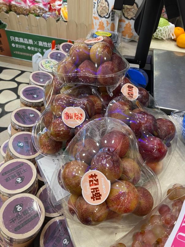 广州日报·新花城记者走访了广州天河区珠江新城某连锁水果品牌的三家专门店,发现:对比春节期间,3月中旬架上的水果品类繁多,每家店售卖水果的种类均超过了60种。其中,稀有性品种的类别超过了10种,包括羊角蜜甜瓜、碎香瓜、糖果李、绿宝石果、胭脂番石榴、芭乐果等。而在另外两家位于天河的大型超市中,记者则发现了仙人掌果、树番茄、灯笼果等几个更加少见的水果品种。