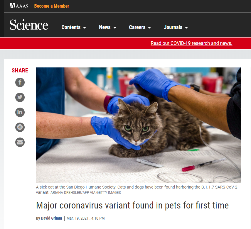 【美法首次在猫狗身上发现新冠病毒变异毒株B.1.1.7】据美国《科学》杂志19日报道,美国和法国研究人员近日发布两份报告称,他们首次发现了狗和猫感染新冠病毒变异毒株B.1.1.7的证据,这是科学家首次在人体之外发现这种变异毒株。详情>>>
