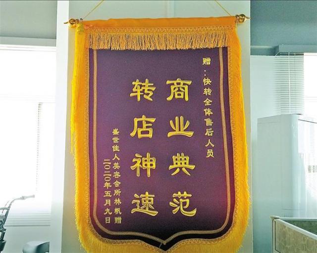 深晚记者在现场看到,这个门口写有"快转商铺网"字样的办公场所内,摆放着近百张办公桌,墙上贴着诸多"成功学"海报与"鸡汤"标语。印有"诚信经营、童叟无欺"等字样的锦旗,与现场员工的一片混乱形成巨大反差。
