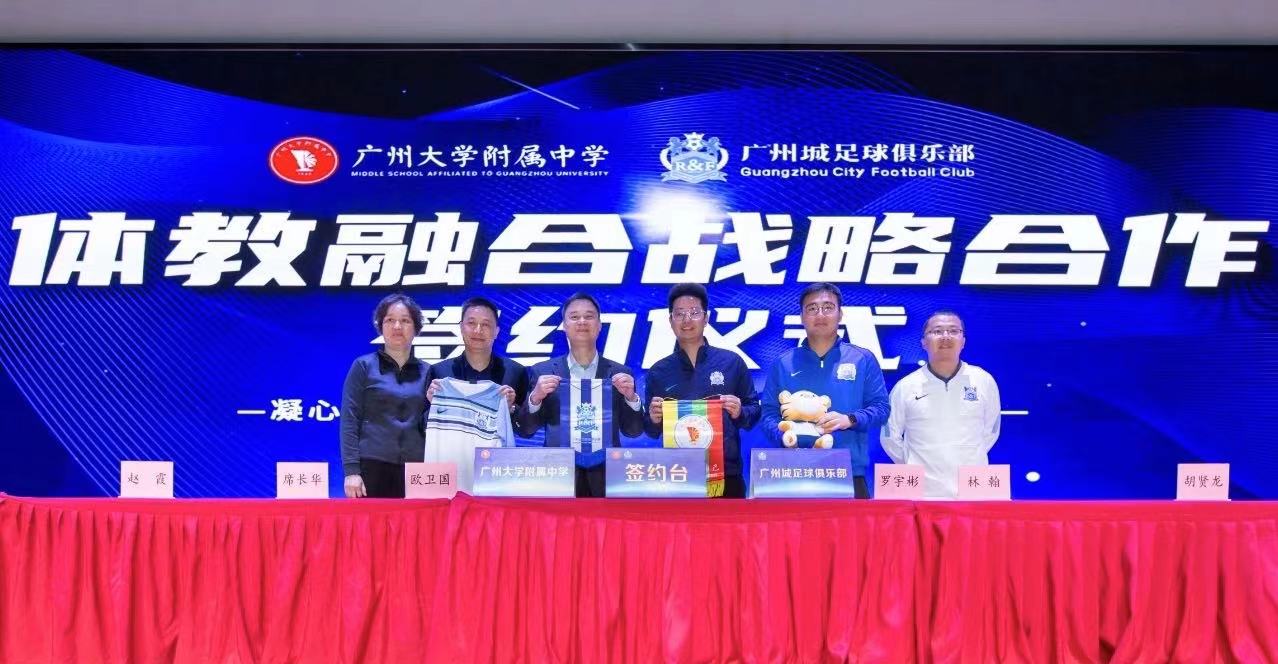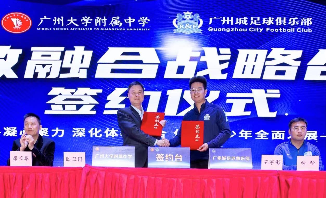 今天下午,广州城足球俱乐部与广州大学附属中学正式签订体教融合战略合作协议,双方将在校园足球球员培养、校队共建,以及共享教育资源等多个领域展开全面合作。